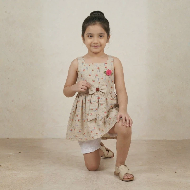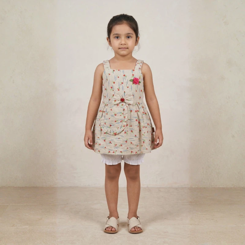 Give your little one the gift of breezy comfort with the Applique Threads Floral Summer Frock. Crafted from premium, breathable fabric and featuring a charming vintage-inspired print, this frock is designed to keep her cool and stylish from playdates to parties. The perfect blend of boutique aesthetics and everyday comfort.